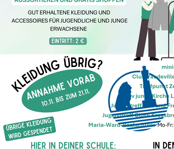 Die Abgabe von gut erhaltener und sauberer Kleidung (Spende) kann in den Pausen am SMV-Raum erfolgen.
