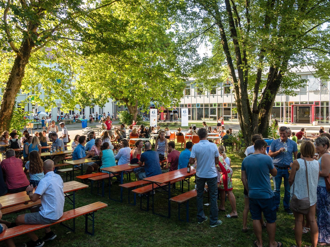 In den vergangenen Jahren war das Schulfest stets mit der Präsentation aller Ergebnisse verbunden, die während der Projektwoche oder der Projekttage in den einzelnen Gruppen entstanden waren. In diesem Jahr sollte das Schulfest vor allem viele Gespräche innerhalb der Schulfamilie ermöglichen und dem gemeinsamen Feiern gelten. Und man kann sagen: Dieses „Schulfescht” war ein voller Erfolg! Der Dank gilt Herrn Göttlicher und Herrn Weichenhain und allen aktiv Beteiligten!